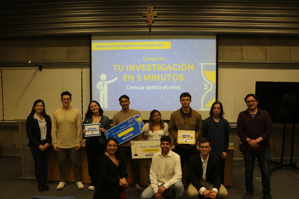 Estudiantes de pre y postgrado de la Escuela de Ingeniería presentaron sus investigaciones en solo tres minutos, apoyados por una diapositiva, tras prepararse con talleres de comunicación científica y ensayos que les permitieron resumir procesos complejos de manera clara y concisa.